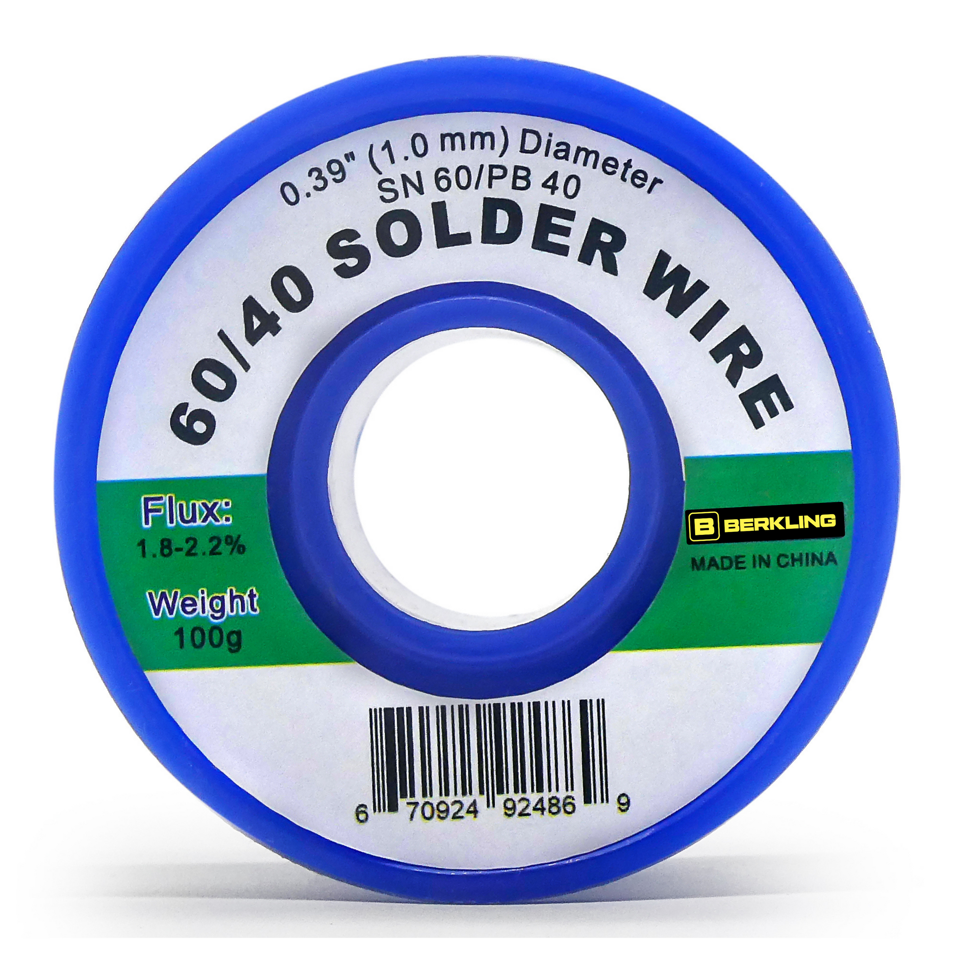 Berkling Alambre de Soldadura Estaño Plomo 60/40 Núcleo de Colofonia, Alta Calidad, Bajo Punto de Fusión